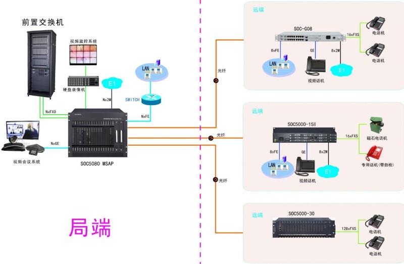 SOC5000綜合接入設(shè)備平滑升級(jí)光通信組網(wǎng)方案,建設(shè)成本低、周期短、安裝簡(jiǎn)單、維護(hù)方便。